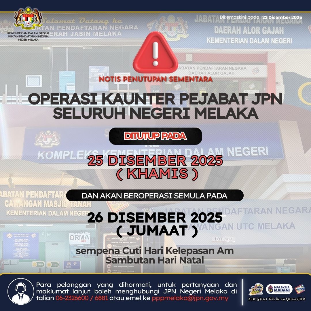 Makluman Penutupan Seluruh Pejabat JPN Negeri Melaka Sempena Hari Krismas 2025